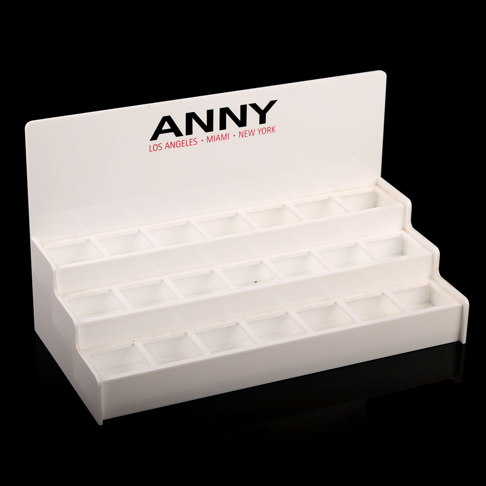 商超带格子的白色亚克力桌面化妆品展示盒
