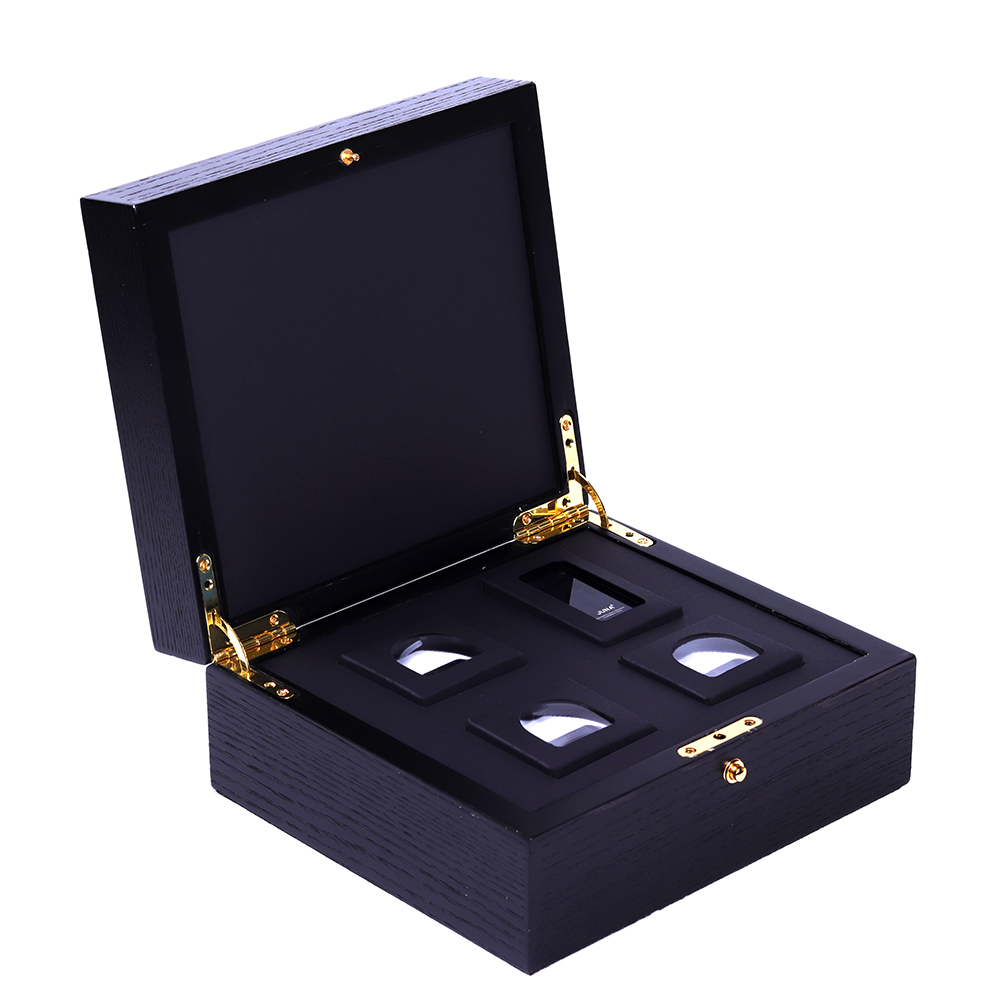 专业定制带金属徽标和锁扣的黑色木质礼品盒
