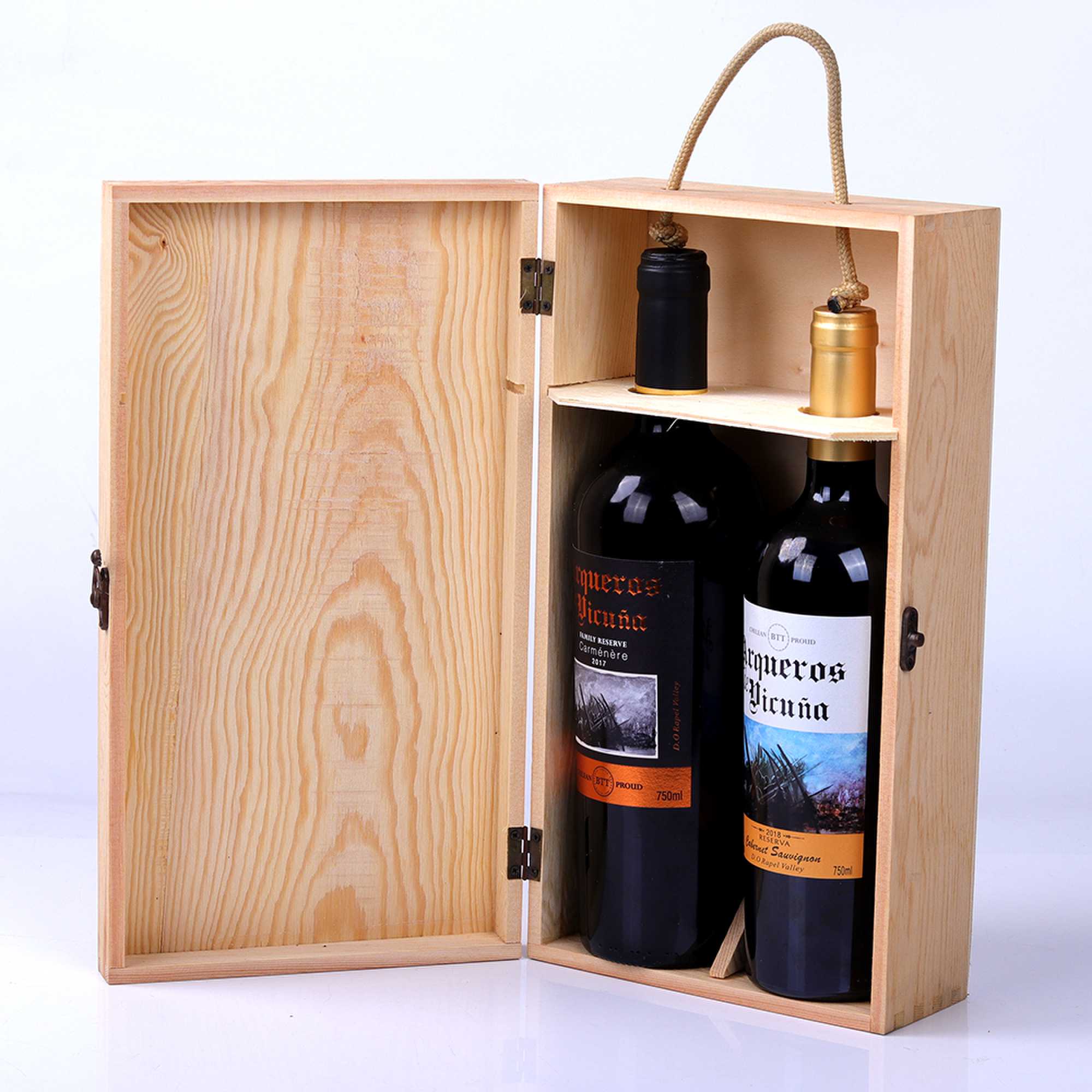 源头工厂高端定制原木色带提手的两瓶装葡萄