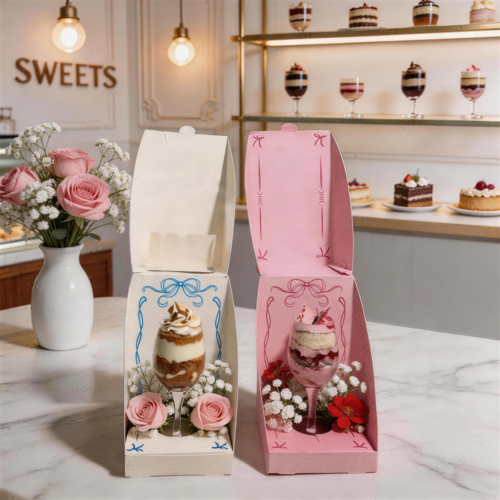 带鲜花装饰的高脚杯甜品定制专属包装展示盒